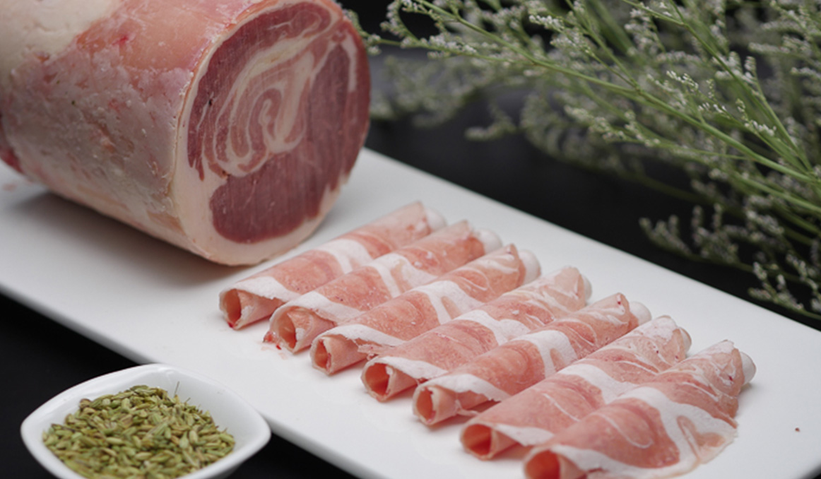 脊椎骨(1-6肋)兩側(cè)部位肉,部位肉酮體占3.6%,表面去風(fēng)干肉、淤血肉及軟硬骨,保留自然脂肪,肉質(zhì)細(xì)嫩多汁,脂肪雜交均勻,有好看的大理石花紋,口感綿軟。